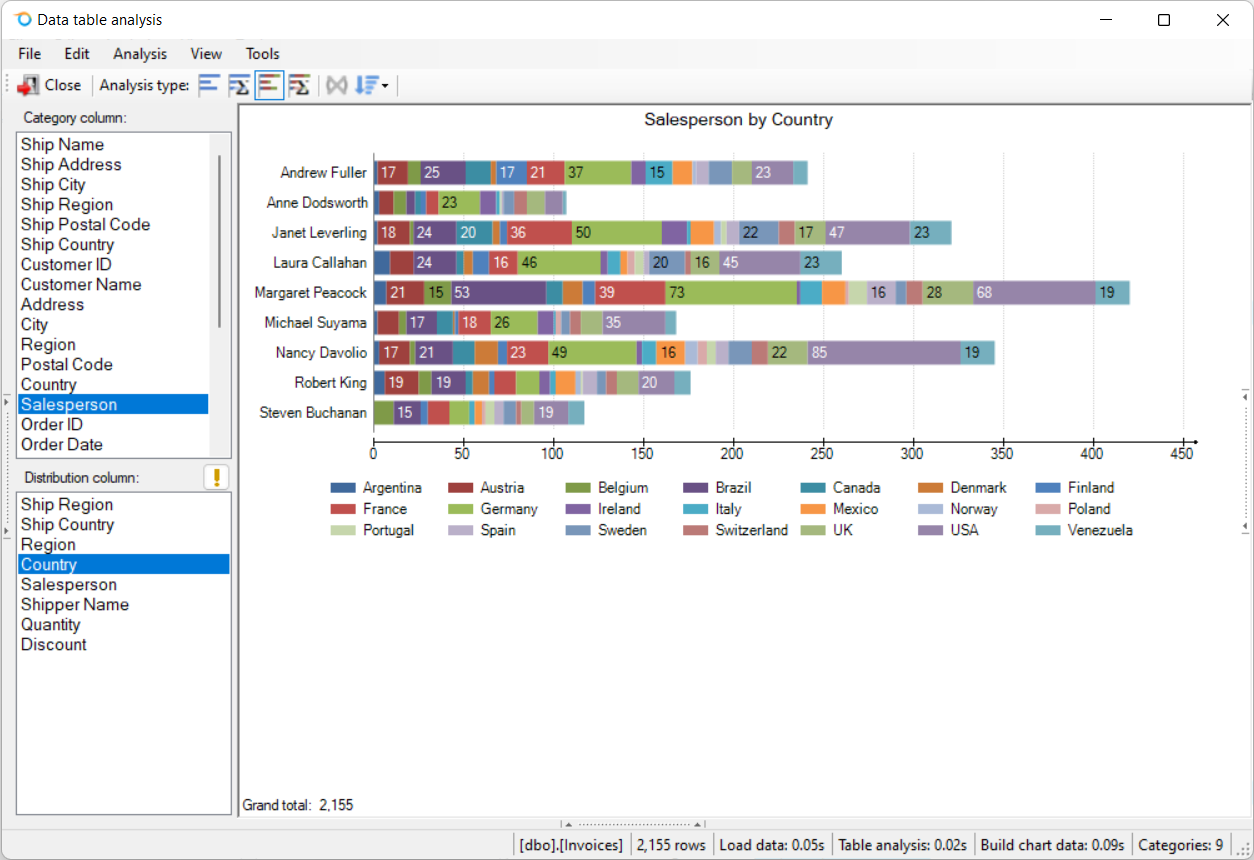 Octofy data analysis type: Category distribution count